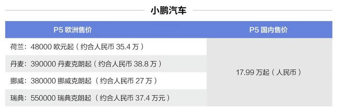 小鹏 P5?在国内卖 17.99 万元,而在丹麦可以卖到 38.8 万元,?溢价 116%。