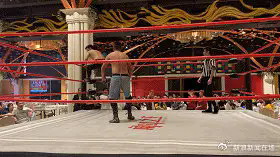 最早的广东吃席 + WWE 组合,是在 2019 年一位江门老板自己承包的婚礼摔角表演。