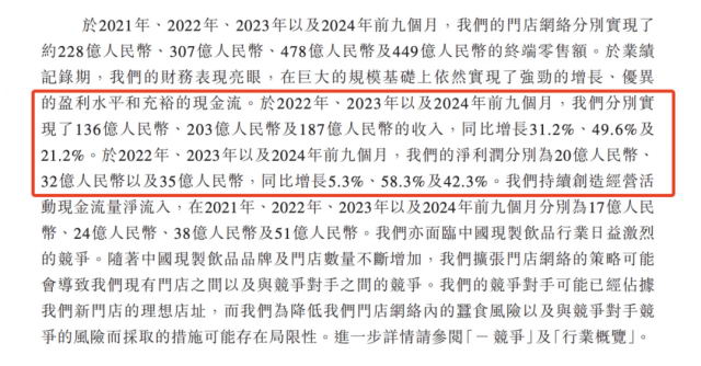 招股书里写得清清楚楚,除了门店数量的增长外,蜜雪冰城在终端销售额、营收、净利润还有出杯量等方面,都实现了可观的增长。( 截至 2024 年 9 月 30 日 )