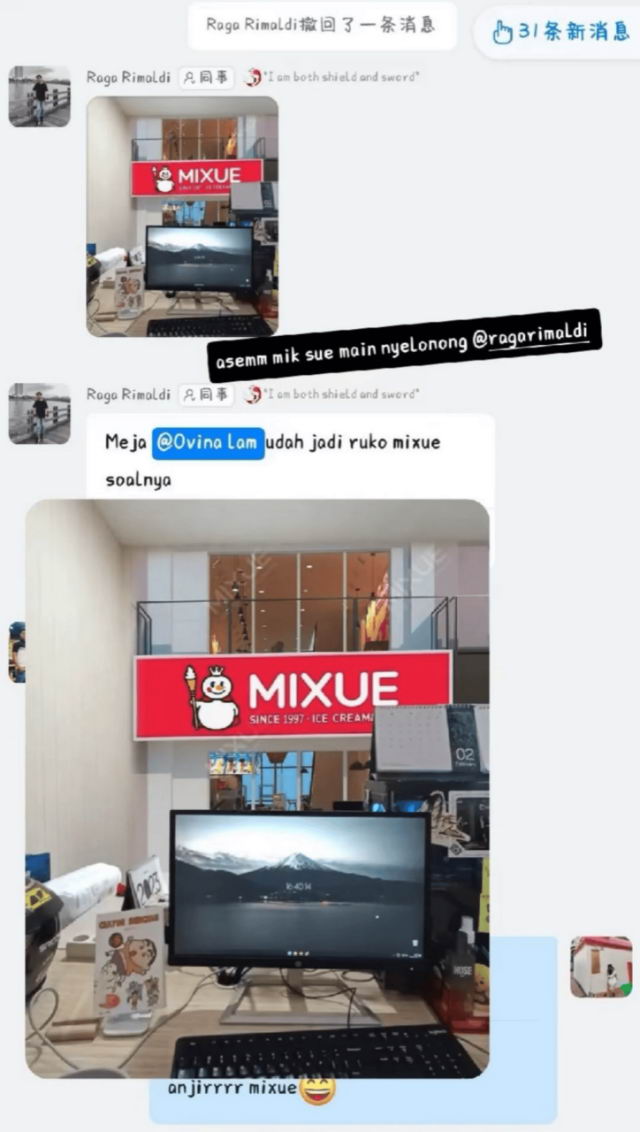 有网友前脚刚请假,后脚就被印尼同事把工位 P 成了蜜雪冰城的门店。。。