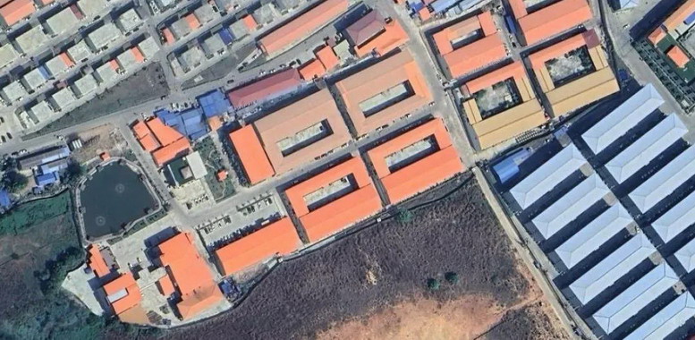 像个工业园区,里边大量这种建筑,初看工业风,再看监狱风: