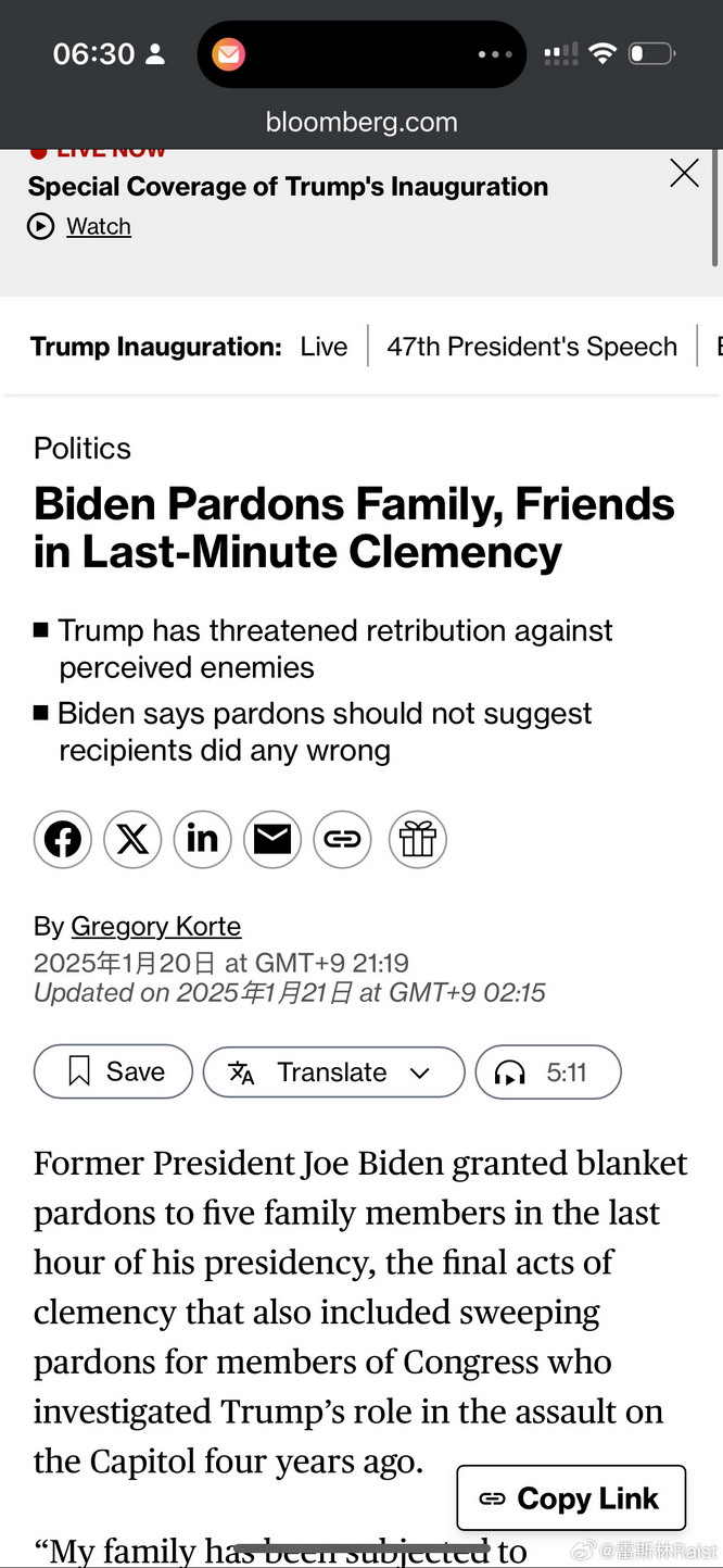 @雷斯林 Raist:拜登在最后一天进行了一系列的 “预防性赦免”。