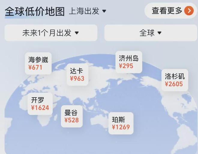 近一点的济州岛最低.295.元,大洋彼岸的洛杉矶也就.2605.元