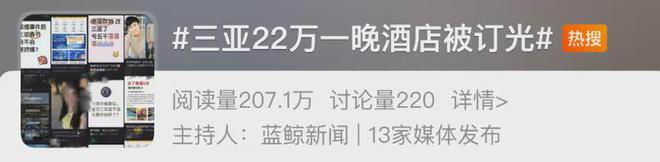 不少原计划去泰国旅行的小伙伴转向去了三亚,22.万一晚的酒店直接被订光