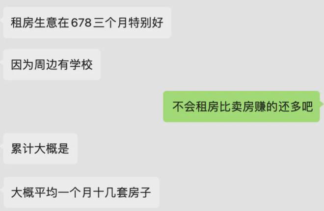 有时候整个月找上门的客人全都是租客,尤其是 6 月 - 8 月毕业季,一个月能出租十几套房子