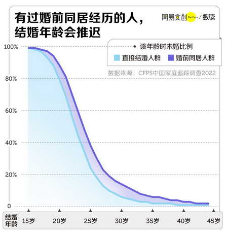 中国家庭追踪调查数据显示,有婚前同居经历的人,结婚年龄会明显推迟 [3]。