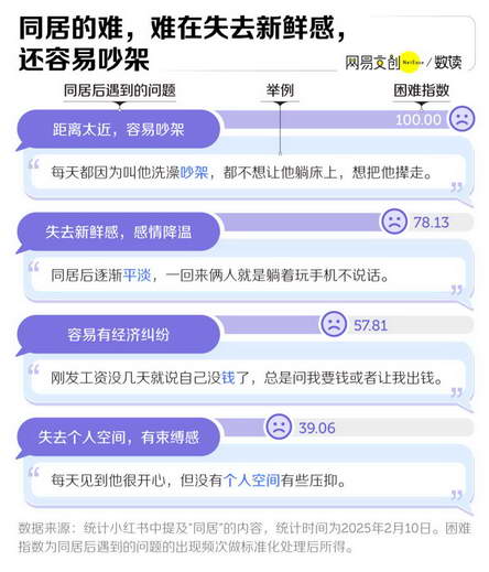 我们统计社交平台上关于同居的贴文,发现同居后伴随而来的问题可不少,第一个便是吵架。