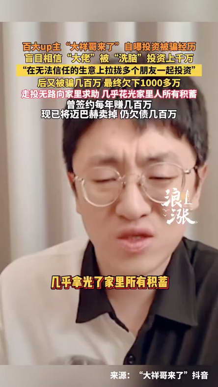 大哥这种行事方式也不是不能成,只不过也许概率是万分之一?这些人也未必就是奔着纯骗,但要说他们这事儿的成功几率,和骗子也相差不大。我觉得我没被骗,90% 是因为我足够贫穷到没被人盯上,根本不值得大哥费这心。还有 10% 的确归功于我自己比较懦弱谨慎。但我身边有不少老板确实也被这么搞过,留下了各种乱七八糟夭折的项目。当然大祥哥的主要问题其实还是 UP 主事业不行了,否则这些钱虽然很可惜但是几年也就补回来了。