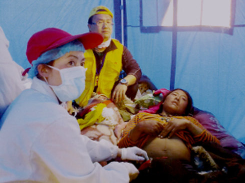 此时,这名紧绷了半个小时的高龄孕妇终于露出高兴的神色,吃了点食物,并操起很不流畅的汉语,连声说谢谢。一个多小时后,经过严密的观察,母子确定平安。医护人员随即离开帐篷,回到救护点。