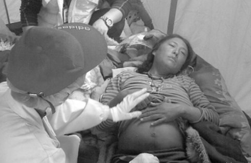 由于是孕妇,不便移动,军区救援人员随即在距离废墟大约50米的地方搭建一座蓝色简易帐篷。卫生兵称,刚被救出时,巴桑体力微弱,经过治疗,很快恢复了生命体征,且神志清醒,可到上午11时许,巴桑突然感觉腹部阵痛,苦不堪言。