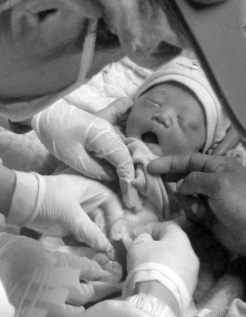 妇科医生名叫郭山英,是一名有着二十几年从业经验的老医生。接报后,她二话没说就带上简易装置赶到事发地。双方通过表情、手语简单作了些交流后,开始生产。巴桑的生产过程很顺利,只用了半个小时,大约有七斤重的男婴便呱呱坠地。由于没有热水,郭山英随即用干净的纱布仔细地擦拭孩子的身体,再用纱布和泡沫垫做了个简易的相对无菌区,放置孩子。