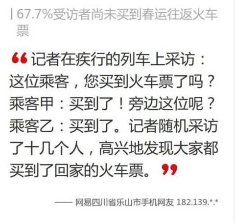 2/3要坐火车回家的人买不到火车票,这又让我想起了这个段子(可能是真事)。