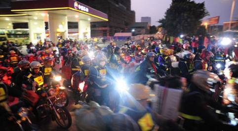 2月9日,福建省石狮市,早晨6点,来自福建全省各地的1500多辆摩托车载着约2000名外来务工人员组成的“铁骑返乡”大军从石狮出发,踏上返乡路。