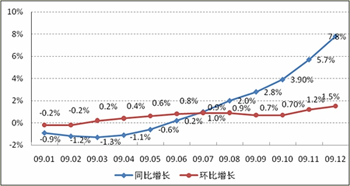 国家统计局公布《2009年国民经济和社会发展统计公报》显示,70个大中城市房屋销售价格上涨1.5%,其中新建住宅价格上涨1.3%,二手住宅价格上涨2.4%;房屋租赁价格下降0.6%。