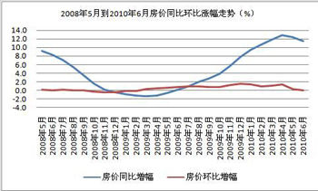 据统计局公布的数据,2010年7月份,全国70个大中城市房屋销售价格同比上涨 10.3%,涨幅比6月份缩小1.1个百分点;环比与上月持平。