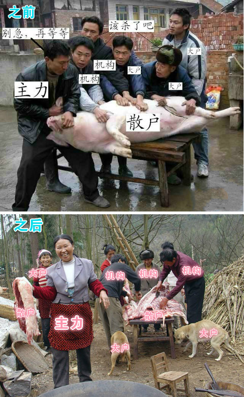 从今天的情况看,关于主力、机构、大户、散户那个图应该变成这样了吧?