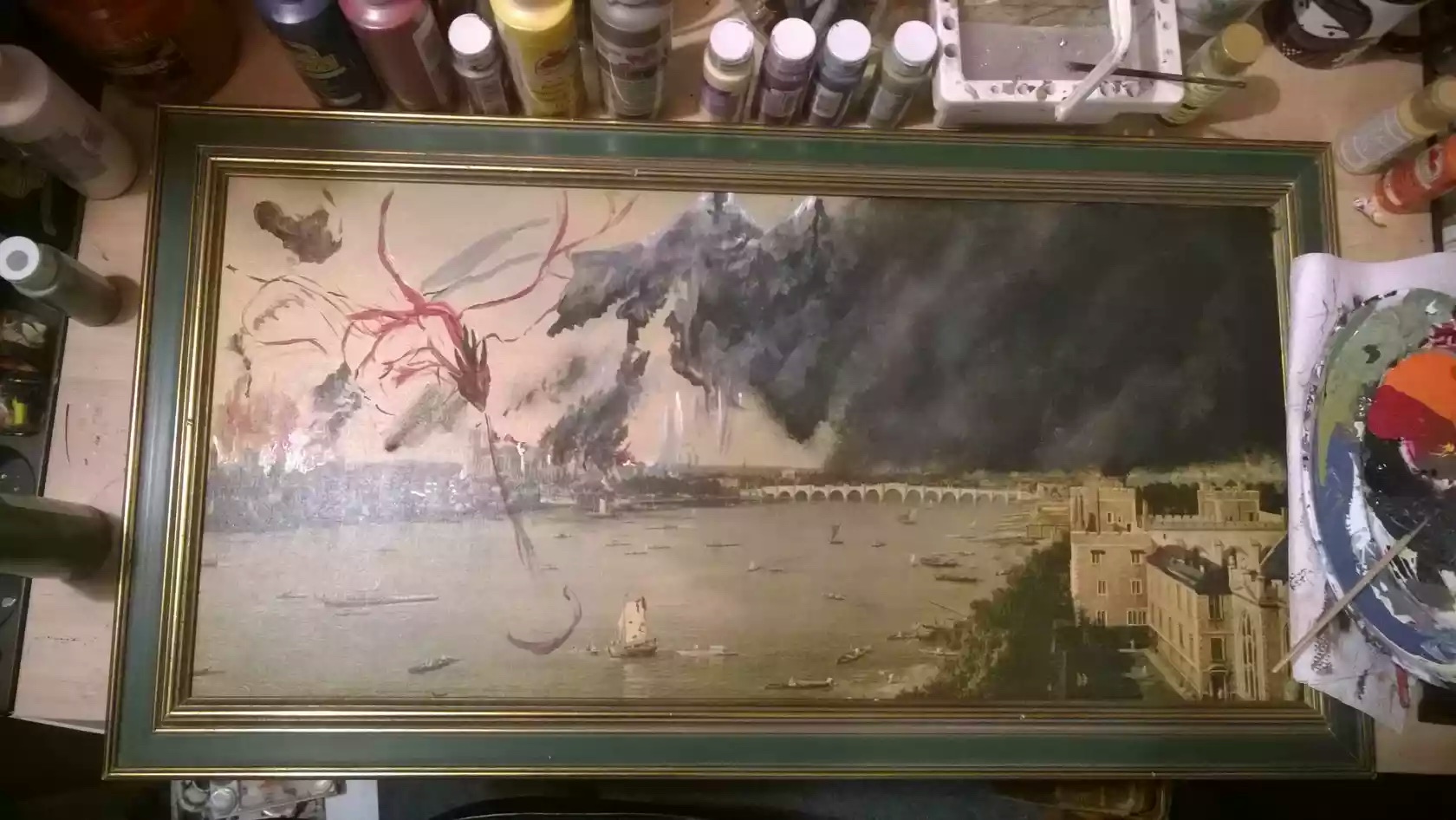 reddit网友FaintestGem偶然入了一张很无聊的风景画,但是他突然想到自己的魔戒粉老爹最近搬了家,所以动起画笔,把这幅无聊的画改成了中土之战作为礼物送给父亲。成品之后,有的网友跟帖表示愿意出250刀买下!