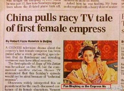 外媒介绍了该剧剧情以及因剧情和服装尺度太大而遭停播的情况,称数亿资金打造的一部美丽的电视剧,只因其中传播“性意识危害”而被毁。另外,英国每日邮报脸盲了,配图将张馨予错认成范冰冰。