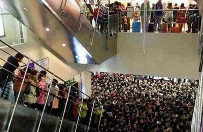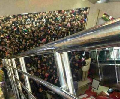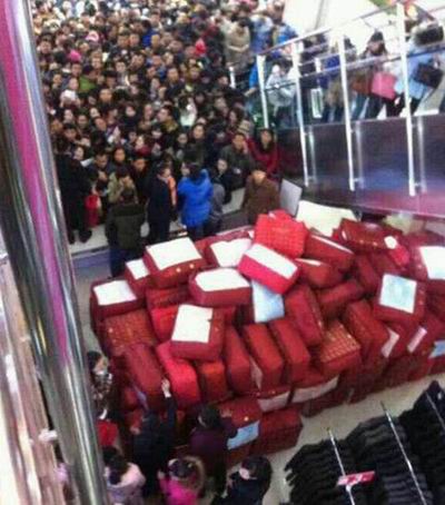 1月3日上午,陕西延安,一商场搞活动送礼品,数百名市民争抢床上用品,场面十分混乱,还有市民称被挤哭。。