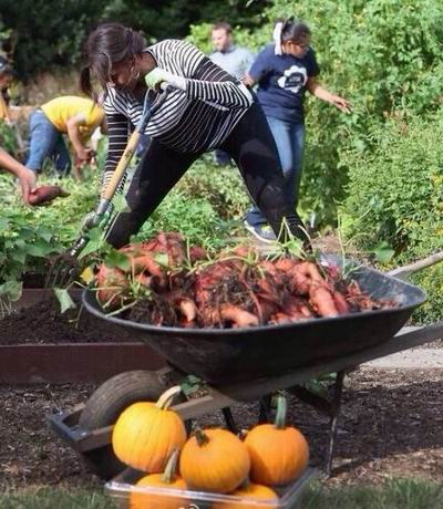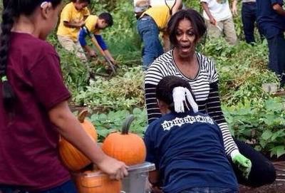 这两天,奥巴马的老婆又是挖地瓜、又是摘南瓜,忙得够呛。那么大的一个官老婆,为什么还要亲自动手干农活呢?难道秘书、保姆、司机和警卫员都是白吃饭的吗?美帝第一夫妇不受拥戴,由此可见一斑。(作家崔成浩)