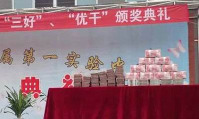 不过,一捆捆现金就这么放在学生面前…这样作秀真的好吗?