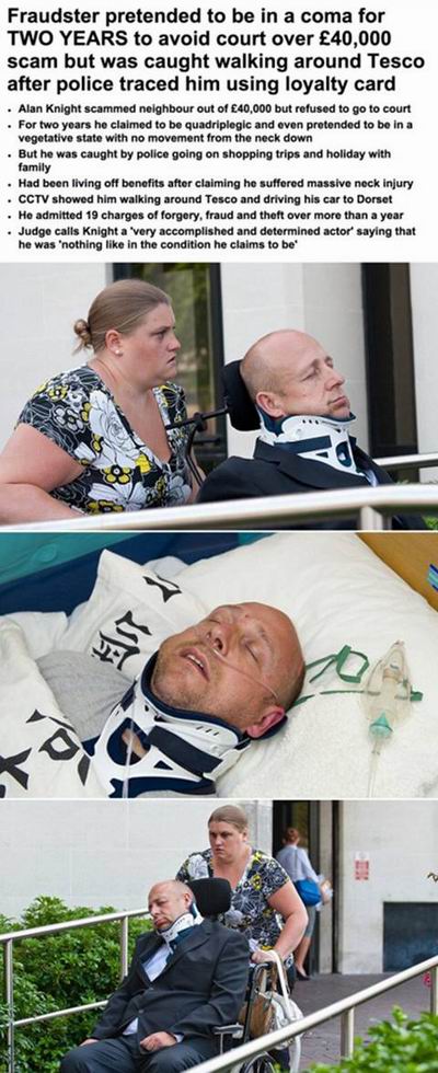 在英国有个职业骗子,为了拒绝归还之前从邻居老人那骗来的4万镑,想了一个好办法:装植物人! 这一装就装了2年,不但不用还钱,还能每个月骗国家福利。