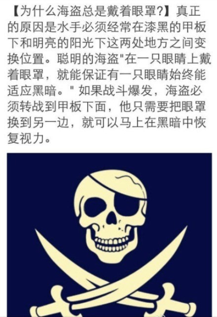 “。。。知道海盗为什么要戴眼罩吗?。。。”
