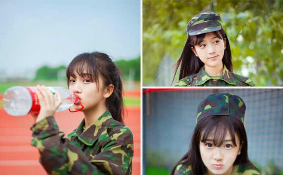 浙江高校“军训女神”曝红 模样清纯动人