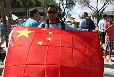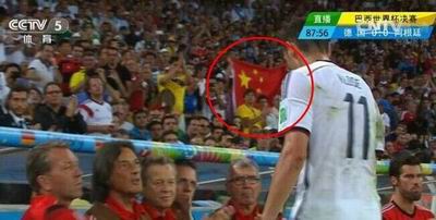 尽管中国队没能打进世界杯,但决赛现场怎能少得了五星红旗!