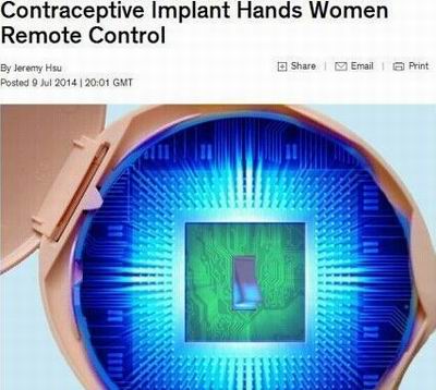 美国研究人员正在测试一种植入式可遥控装置,它能每天向体内释放达到避孕剂量的激素。想怀孕时,只要按下遥控器把植入式装置关掉就可以了。如果想避孕,那重新启动这个微小装置就行了。