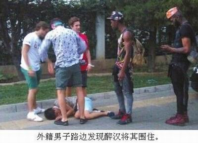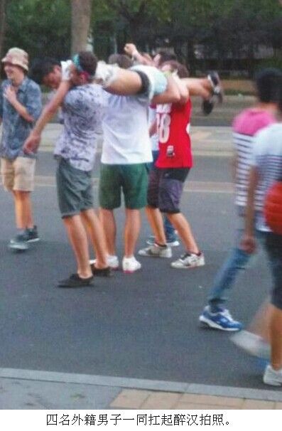 太嚣张了,欺负到家门口了。昨天早上5点半左右,工体西门附近,一名男子醉酒不省人事后,被6名外籍男子脚踏、肩扛,摆出各种造型拍照。其间,外籍男子还不时向路人做出挑衅动作。