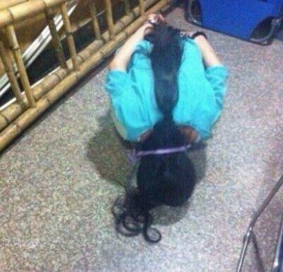 近日温州某服装市场抓到了一个女贼,店主气愤不已“逼”小偷认错,可认错方式有些“特别”。女贼先是被挂了一块写着“我是小偷,该打”的牌子,然后跪地磕头,期间不断有人在旁边拍照。