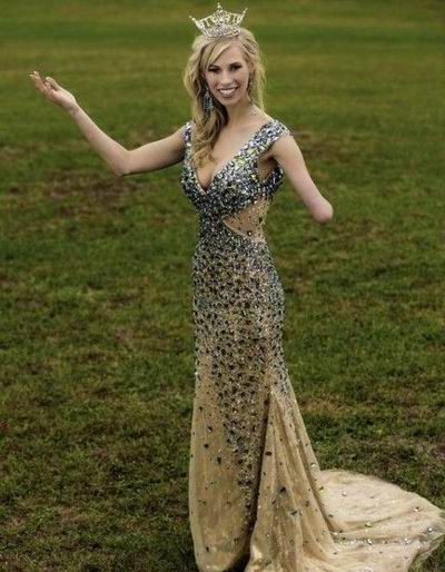 美国23岁的年轻女孩Nicole Kelly,出生便没有左前臂,但她凭借自信和美丽,打败了数以百计的竞争者,成功获得2014年美国爱荷华州选美比赛冠军!