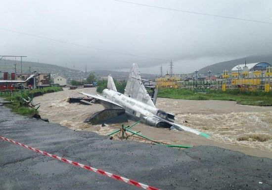 俄罗斯某市近日遭洪水侵袭,存放在当地数架退役的苏-15战斗机也被洪水冲走,场面十分震撼,犹如灾难大片。