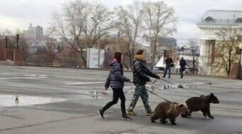 在俄罗斯,牵熊散步完全是日常风景。。。这民族,坦荡得有点吓人。。。