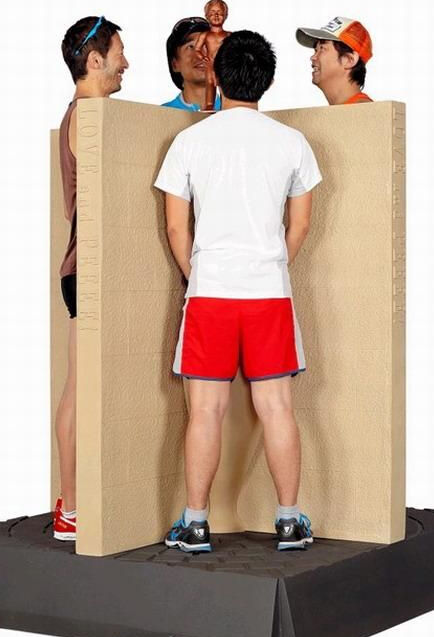 最近,一家日本公司发明了一座可供4名男性同时小便的临时厕所,男性如厕不再拥挤,提高了厕所的使用率。