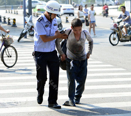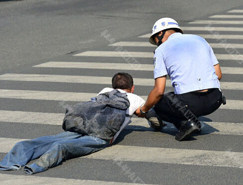 日前,成都一名交警花了20分钟,成功劝喻一名伪装成残疾的乞丐不要趴在被太阳烧得火烫的地面,把他弄到了阴凉处。