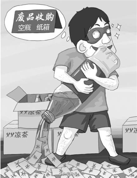 浙江一名小偷偷了2千多箱凉茶,一共30000多瓶,总共价值17万,但是,他却没有因此而赚大了。【他和三名收废品的一起,一直忙了12个小时,才把这些饮料全部倒光,倒掉后卖空瓶,到手共得115元】。