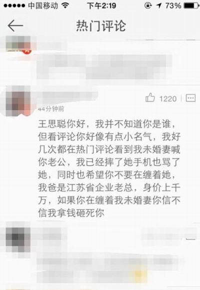 全世界的女人都要嫁给王思聪,恨死我了。我随手一甩,飞镖直接命中王思聪的海报,我问媳妇:“准不准?” “不准不准!”媳妇冷冷的看着我,“我不准你伤害我老公。”(阿诗玛奶茶)