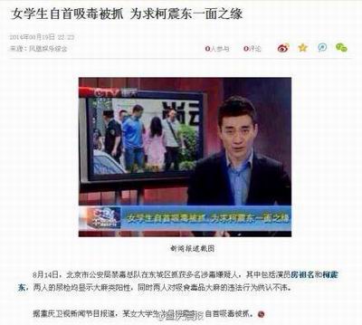 据央视《焦点访谈》报道:房祖名吸毒已经有8年历史,而柯震东则是有两年吸毒史,柯震东的第一次吸毒正是在房祖名家中。