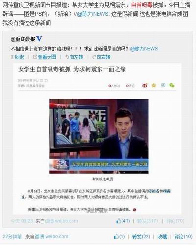 不过,该重庆电视台新闻主播辟谣称并没有播过这条新闻,是网友PS的。