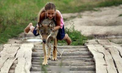 白俄罗斯首都明斯克附近一个村庄,有户人家从5年前开始饲养了几只野狼,并驯化它们。这个家庭的主人Oleg Selekh是当地猎场的看守人,他的孩子们非常喜欢和狼一起玩,其中10岁女儿Alisa还常常骑着狼在花园里狂奔!
