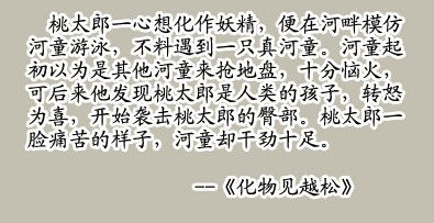 读日本的妖怪物语,这一段令人印象格外深刻,突然很同情桃太郎。