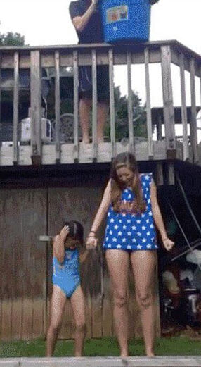 冰桶那个没事,桶最后砸在小女孩身上,视频动画有!