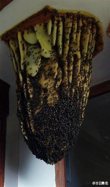 哇!!!!好大一窝蜜蜂!!!!估计要有十几斤蜜糖啊!!!![14]