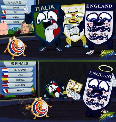 随着意大利不能帮英格兰击败哥斯达黎加,英格兰也就宣告立即出局了。