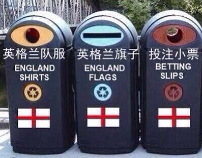 今天在街上散步,看到一个乞丐,我掏出一块钱硬币往他碗里丢,丢了三次都没丢进,乞丐说:“你把英格兰球衣脱掉试试。”(孙正阳)
