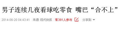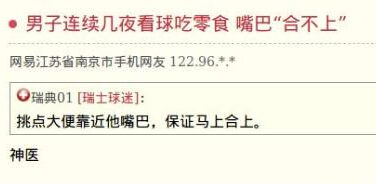 一名男子怀疑连续几夜看球吃零食,引起下颌关节紊乱症,嘴巴怎么也“合不上”。