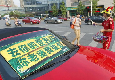 在绍兴街头,有团队发起街头送玫瑰,关爱因世界杯“失宠”的女性行动。