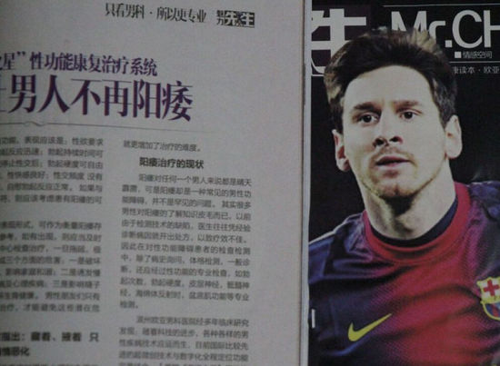 近日,山东滨州一家性病医院印发的宣传刊物上,盗用了阿根廷球星梅西身披巴萨球衣的大幅肖像,引起热议。